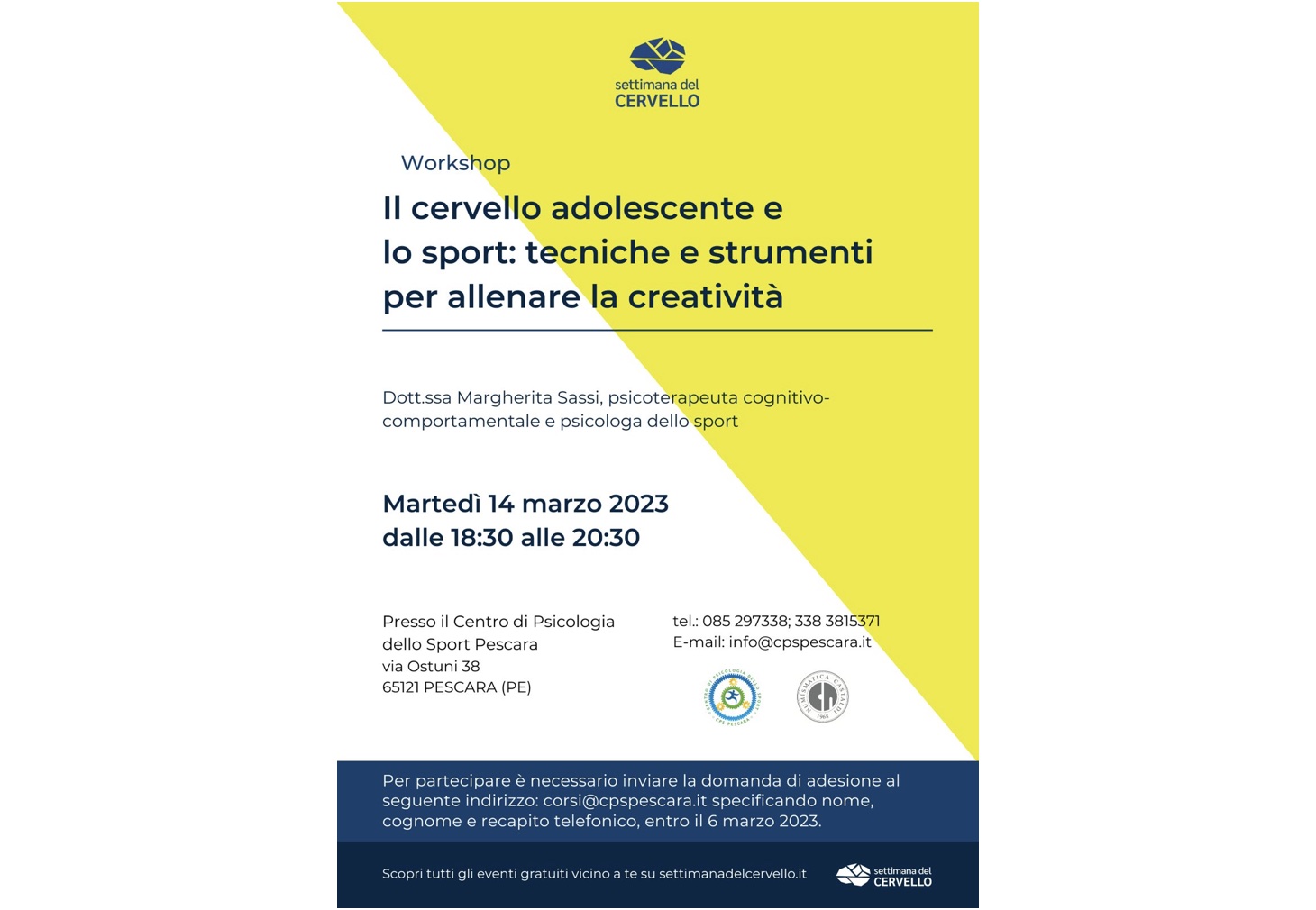 Organizzatrice: Dr.ssa Margherita Sassi - Psicoterapeuta e Psicologa dello sport, Responsabile del CPS Pescara
