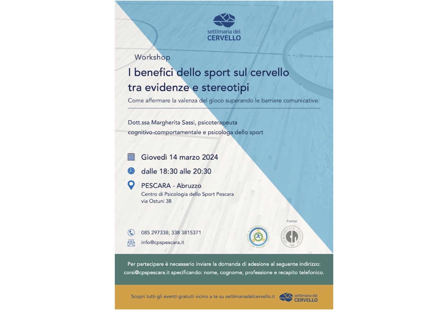 Il Centro di Psicoologia dello Sport Pescara aderisce a questa campagna mondiale con un workshop dedicato alle evidenze, agli stereotipi e alle barriere comunicative riguardanti i benefici dello sport e quindi del gioco sul cervello.